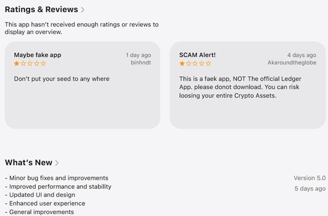 Fałszywa aplikacja Ledger w App Store doprowadziła do strat 9,5 mln dolarów, zanim Apple ją usunęło.